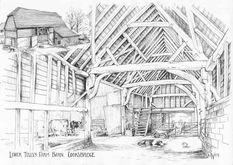 Contained in this page are further details and photographs of Cooksbridge Farm, as well as a drawing showing its original structure.