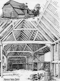 Comments: Three bay, king post roof structure, heavily timbered, in